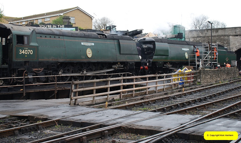 Swanage Railway Swanage Railway from 2025 & 2026 » 2026 April 04 SR Peter Rabbit & 34072 Swanage - Norden - Swanage. (Very overcast day)